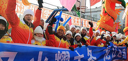 The torch relay lasted 6 days and covered a distance of 2,009 km. Altogether 600 torchbearers with 3,500 escort runners in the Heilongjiang Province participated in the relay.