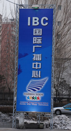Located in the Heilongjiang Radio and TV Broadcasting Center, 1 km from Harbin OC Office Building and 2 km from Victories Hotel, the FISU Headquarters, the Main IBC for the Harbin 24th Winter Universiade covers an area of 1,000 m². It is equipped with a TV signal control system which receives signals from all competition venues, the post-production system including 30 editing machines, and several HD studios. FISU TV Broadcasting Office and the on-site working offices of TV Broadcast Department of Harbin OC and the host broadcasters are also located in the IBC, providing foreign TV media with broadcasting and technical services. The services include signal transmission, program production and equipment rental. Meanwhile, telecommunication, competition information inquiry, transportation, refreshment, lounge areas and other supportive services are available in the Main IBC.