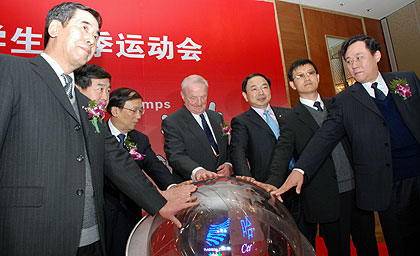 FISU President George Killian, an avid stamp collector specializing in University Sports and Basketball, was all ears when the two artists responsible for the artwork of the stamps, Ms. Shang Yu and Mr. Wang Huming of the Artwork Editing Division of the Postage Stamp Printing Bureau of the China Post Group, explained him their artwork.