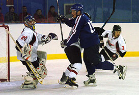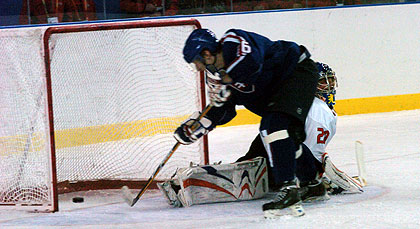 A highly anticipated game between Finland and Canada saw an upsetting and scoreless game until almost the second half of the third period. Finland, slightly trailing through fatigue, took too many penalties and Team Canada collected on the mistake of the Finnish. The Canadians let the red light flash five times. Both teams showed the 2,100 fans this encounter might be a worthy ‘replay’ in the final round.