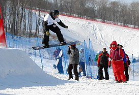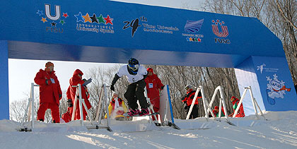 The weather seemed it wanted to celebrate the start of the competition in this very beautiful venue of Maoershang: a beautiful sun and a thermometer that has climbed to -12°C have presided the qualifying rounds of the men and women snowboard cross events. Instead of the classical 4 men/women races that will take place for the next rounds, the qualifications consist in a double time event (only the best time of the two legs is taken into account in the qualification).