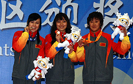 President of FISU, M. George E. Killian who came in Yabuli this afternoon was very pleased to give the medals to these three Chinese girls.