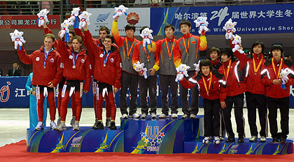 Chinese skaters dominated the short track medal podiums today. In the Women’s 1,000m, the Women’s 3,000m Relay and the Men’s 5,000m Relay the gold medals went to host China. Canadians, Koreans and also a Russian skater mounted on the podium.