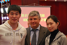 Mr. Saintrond flanked by the triple gold (2005-2007-2009)WU figure skating champions Hao Zhang and Dan Zhang (CHN)