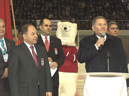 IIHF Council Member Ernest Aljancic opened the tournament along with Minister of Health Dr Recep Akdag, the Major of Erzurum Ahmet Küçükler and the Governor of Erzurum Sami Bulut. Photo: TBHF