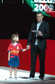 All this sci-fi science turned in real emotion when little Anna entered the pitch cheering ‘hello’ while the person guiding her , nobody less than Nemenja Vidic, a player of Serbia’s national football team and Manchester United, told the 10,000 people attending the ceremony that modern science saved little Ana’s life not so long ago encouraging everyone to strive for the best and never to settle in defeat.