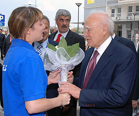 Today, July 2nd, the Athletes’ Village of the 25th Summer Universiade in Belgrade was visited by a Very VIP Guest. Indeed, the President of Greece, Mr. Karolos Papoulias, was welcomed at the entrance of the International zone of the Village by FISU President George Killian and his wife Mrs. Killian, President of the UB2009 Executive Committee Nebojsa Ilic and Mayor of the Athletes’ Village Ranko Tepavcevic.