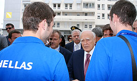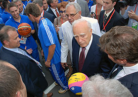Today, July 2nd, the Athletes’ Village of the 25th Summer Universiade in Belgrade was visited by a Very VIP Guest. Indeed, the President of Greece, Mr. Karolos Papoulias, was welcomed at the entrance of the International zone of the Village by FISU President George Killian and his wife Mrs. Killian, President of the UB2009 Executive Committee Nebojsa Ilic and Mayor of the Athletes’ Village Ranko Tepavcevic.
