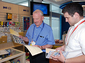 One collector already got his stamps: George E. Killian, the FISU President. It’s a well-known fact that Mr. Killian is an avid stamp collector specialized in basketball and University Sport. He recently visited the post office to buy this newest edition in the Universiade collection.