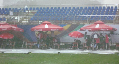 ‘As soon as we were hit by the bad weather we took the decision to stop the competition for safety matters as there was lightning’, Holgado explains. ‘The athletes were sheltering under the tents holding them with their weight to prevent the tents from flying away. Immediately we came up with four emergency plans. Plan A was moving the whole set to a football field nearby. I checked if we could organize the competition from there but it was impossible as the field was not free. Plan B was working on the actual site as much as we could and hold the competition even if it was wet. Plan C, in case the field was really bad, we would cancel the team event and award the team medals based on the ranking. Plan D was e to cancel a number of matches. We informed al the teams. This morning we came to the scene and the field looked good. So we finally decided to keep the competition in the original venue. So Plan B worked as all the archers informed us they wanted to shoot all their arrows. They said ‘if our feet get wet, they get wet’, so there is a very good team spirit and I’m happy we could continue the competition.