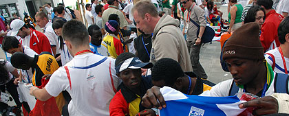 How can you see that the Universiade is coming to an end? Well, stroll through the Athletes’ Village and go to the main square. You will find the athletes swapping their team uniforms with each other. This makes it difficult to talk to an athlete, because the guy wearing a shirt that says ‘Australia’, might as well be a Frenchie. Or the Swiss girl may actually be Canadian. Anyway, FISU Media gave it a try and asked a number of athletes what they think about the Universiade. Some impressions.