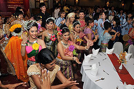 Cultural PerformanceOn Saturday, October 3rd, 2009, after the General Technical Meeting, Dr. Mathana Santiwat, Chairman of the Organizing Committee, hosted “the 1st Asian University Woman’s Volleyball Championship” welcome dinner for the athletes, officials, national delegations, media, and guests of honors at Suphanahong Ballroom, Alexander Hotel of Thailand. The event included welcome remarks by Dr. Mathana Santiwat and the presentation of gifts to the Asian University Sports Federation, national delegations, and sponsors. An impressive cultural performance by Bangkok University students was performed at the end of the event.