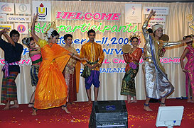 Cultural PerformanceOn Saturday, October 3rd, 2009, after the General Technical Meeting, Dr. Mathana Santiwat, Chairman of the Organizing Committee, hosted “the 1st Asian University Woman’s Volleyball Championship” welcome dinner for the athletes, officials, national delegations, media, and guests of honors at Suphanahong Ballroom, Alexander Hotel of Thailand. The event included welcome remarks by Dr. Mathana Santiwat and the presentation of gifts to the Asian University Sports Federation, national delegations, and sponsors. An impressive cultural performance by Bangkok University students was performed at the end of the event.