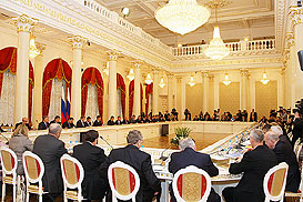 Russian President Medvedev talks to the ISF Presidents (left FISU Vice-President Bergh)
