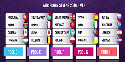You will find on the two tables above, the results of the team draw regarding the 4th World University Rugby Sevens Championship.