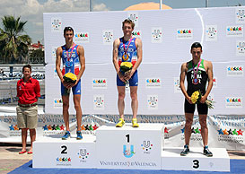 Etienne Diemunsch wins the men’s raceFor the men, with a hotter air temperature of 28°C at 10:15am, we could see a much tighter group in the water with 86 triathletes competing, creating very quickly two big groups. The bicycle race ended with the leading of Italy and Cuba, arriving at the same time, but the Cuban athlete lost all his strength, and the French team took this to its advantage, especially Etienne Diemunsch and Brice Daubord, both winning the first and second places with a time of 1:43:38 and 1:44:03. Third place went to Pedro Palma from Portugal with a 1:44:40.