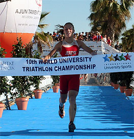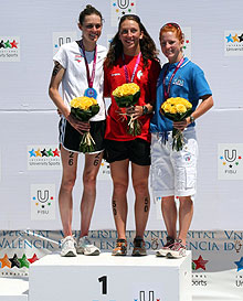 In the running race an athlete of the USA joined the first group and finally the competition ended with Agnieszka Jerzyk from Poland finishing first, clocking a total of 1h55:19 followed by Gwen Jorgensen (USA) on the second place with 1h55:26 and Annamaria Mazzetti (ITA) in third place with 1h 55:45. The Spanish public put all its hopes on the Spanish girls, but the first one, Estefania Dominguez Calvo reached the 7th place.