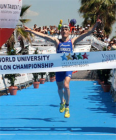 Agnieszka Jerzyk wins the women’s raceThe swimming was lead by a group of 3 girls, from the Czech Republic, Italy and Spain.