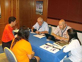 The Head of Delegation of the Chinese Taipei Team at the accreditation with CIC Secretary Fernand Bottelberghs and WUC Director Laurent Briel The CIC under the leadership of Fernand Bottelberghs started the accreditation process which runs smoothly. The teams practiced on the driving range, because the official practice rounds on the course starts on June 6th and finishes on June 7th, day of the Opening Ceremony.