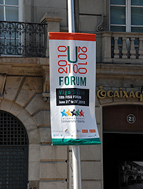Forum banners are strategically placed throughout the city