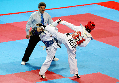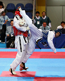 Korea won yet another gold medal in the women’s -46kg category. The gold medal winner was Mi Na Hwang (Korea) that beat Rukiye YILDIRIM (Turkey) by 3-1. The Korean was trailing with just three seconds but managed an amazing head-kick to take 1st place.
