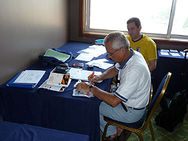 Mr. Meschi, CIC controlling the eligibility of the participantsAt the meeting the OC delegates gave an update of the preparations so far. Mr. Cabral thanked the OC for its hard work and professionalism.