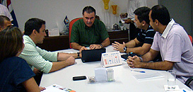 Cicero Almeida received on Thursday (29/07), in his office, Luciano Cabral, Alim Maluf, secretary-general of CBDU and Andre Matos, CBDU technical director, who presented the technical project proposals for the implementation of the World University Beach Volleyball in Maceió.