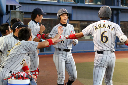 Canada scored 2 runs in top of the 1st inning by a timely safe hit of Fleming, which was quickly overtaken in the bottom by a 3 run homer by Yang Kuan Wei of Chinese Taipei which added another run in the 2nd inning. Canada smashed a come-from-behind 3 base hit by Bell in the top of the 3rd inning with a total of 5 runs. Yang Kuan Wei of Chinese Taipei homered again for 2 runs in the bottom of the 3rd inning and subsequently Canada scored a total of 13 runs against Chinese Taipei’s 6 till the top of the 7th inning. Chinese Taipei scored 4 runs in the bottom of the 7th inning including a home run of Chen Wei Chih and closed behind Canada by 1 run after scoring 2 runs in 8th and tied the score in the bottom of the 9th inning bringing the game went into extra innings for the second time for the Championship. Canada scored 2 runs in top of the 10th inning by a timely hit of Ellis and sacrifices a fly of Fleming and won the game
