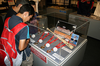 TOKYO – The Baseball Hall of Fame and Museum in Tokyo has started displays of memorabilia of 5th World University Baseball Championship which was held from July 30 to August 7. The exhibits include Gold (Cuba), Silver (USA) and Bronze (Japan) medals, the first homerun ball of the Championship (Fleming of Canada), an autographed bat swung by Sadaharu Oh, legendary homerun king of Japan, at the ceremonial first pitch thrown by Antonio Castro (Cuba), 3rd Vice President of International Baseball Federation.