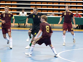 The second quarter-final started at 6.45 pm in the Sports hall “Spens 2” between the winner of pool C (RUS) and the second of pool B (POR). The first half both teams played with a well organized defence resulting in few opportunities on both sides. However, the Russian team scored after ten minutes by Prudnikov, the captain of the Russian team. The second half showed a very high level of futsal. A well organized Russian defence, supported by the excellent saves of Fayzullin and the deathly attacks that were the biggest problem for the Portuguese team.