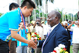 FISU EC member Silvanus LampteyIn the women’s competition, after the final 24 gates, Hsin I Tseng from Chinese Taipei took Gold medal, becoming World University Woodball Champion with a final round of 113 and 321 total. Silver medal went to Ying Chi Peng also from Chinese Taipei with a final round of 109 and 323 total. Cho Kwan Ng from Hong Kong concluded the final round with 108 strokes, totalling 336 strokes to collect the bronze medal.