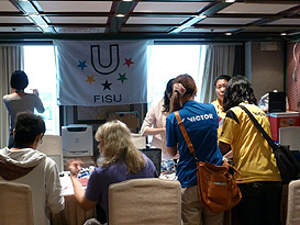 As we know before the start of the competition the FISU CT Badminton Roger Johansson (SWE) accompanied by Mr. Surasak (chief of umpires) and Michal Buchel, FISU Sports Manager visited the Sports Hall to inspect the competition and training venue for a last time. They made some suggestion to the organizer, but are satisfied with the situation of the last preparatory work. The floor was put in place, official banners and flags of the participating countries were raised. The venue will be an excellent meeting point for the badminton players from different continents.