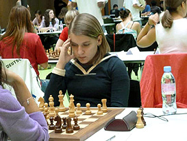 Zoja Severiuk (RUS)In the women’s tournament Zoja Severiukhina (Russia) scored her third victory in a row in a slow manoeuvring game. She is joined in the lead by the Slovak Zuzana Borosova who beat Sarah Hoolt in a game that bore remarkable similarity to the latter’s spectacular win in the morning round. In both games White offered a long-term exchange sacrifice on the d-file, primarily intended as a means to launch an attack on the enemy king. In both games White later on managed to create a decisive passed pawn in the middle game. Some you win, some you lose.