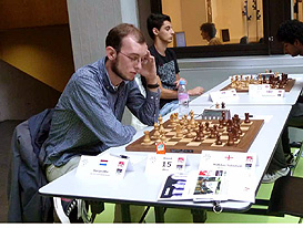 Marijn Otte (NED)ZURICH – Two long fights between the leaders, but no decision – after round four nobody was left with a clean score in the World University Chess Championships in Zurich. Ilya Khmelniker from Israel had been the surprise of the first third of the men’s tournament. However, before round 4 his chances to hold his own against the great tournament favorite Wang Yue were not considered too high, given that the Chinese boasted a 250 points advantage in Elo rating and had the White pieces. Unimpressed, Khmelniker chose a sharp variation of the Grünfeld Defence, sacrificing his b7-pawn early on. Despite an immediate exchange of queens, Wang Yue remained in the defensive for a long time.