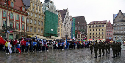 The Opening Ceremony was held in the beautiful historical center of Wroclaw. The organizers had to face the daunting weather conditions, which however did not diminish the charm of the Ceremony. The Chairman of the Organizing Committee Mr. Dymalski thanked the authorities and also the academic authorities of Wroclaw University of Economics for their support in organizing this FISU championship. FISU Assessor Mr. Jasnic then took the floor to thank the many participants for their attendance and also stressed the importance of AZS in the dynamism of FISU. He then invited the Mayor of Wroclaw Mr. Rafal Dutkiewicz to declare the championship open.