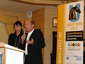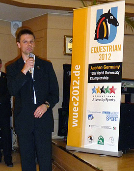 Nico SperleThe German delegation, the OC for the next WUC Equestrian in Aachen in 2012, the Secretary General of ADH, Mr. Olaf Tabor and the President of ADH, Mr. Nico Sperle, invited the participants for a ‘German’ evening. At the reception they promoted the next event to be held in the city of Aachen in 2012. The city of Aachen is considered as the Wimbledon of horse riding. The organizers hope that many delegations will travel to Aachen for the next edition of this championship and they are confident the participants will have unforgettable experiences.