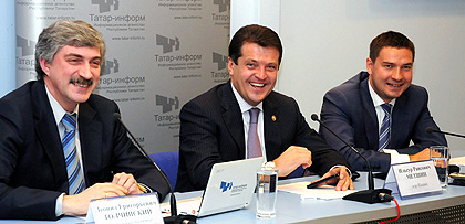 The Vice-Mayor of Sochi Anatoly Rykov, the Mayor of Kazan Ilsur Metshin and the Director General of the Kazan 2013 Executive Committee Vladimir Leonov