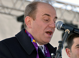 The Village MayorOnce the ribbon cut, the dignitaries walked to the Universiade Flag Plaza where a crowd was awaiting them.