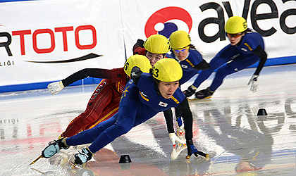 ERZURUM – The finals of the women’s 1,500 m were traditionally an Asian affair. Three Korean and two Chinese skaters fought hard for the gold. It was Korean Eun Byul LEE who claimed the gold in a thrilling finale beating compatriot Ba Ra Jung and leaving the bronze o Chinese Jianrou Li.