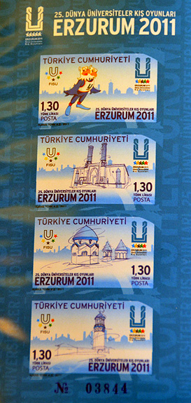 This set is only available with the entire leafletERZURUM – Post stamp collectors will be delighted to find out that the Organizing Committee of the 25th Winter Universiade together with PTT, the Turkish Post, have provided a nice philately collection to commemorate the 2011 Winter Universiade hosted in Erzurum.