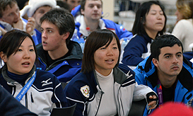 The men’s competition today started with a thriller between Japan and Czech Republic. After a scoreless first period it was Team Czech that opened the score early in the second period via Nedrda. Team Nippon tried to equalize the score but in vain. Then in the third period Terao brought relief by scoring the equalizer. Regular playing time ended and the game went in overtime. Another thriller-moment as the sudden death goal stayed away so the game had to be decided with penalty shots, which was decided in favor of Team Japan. Not only big cheers by the Japanese in the ice arena, but also in the Village restaurant where some of the Japanese athletes were watching the game on the giant TV screen.