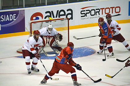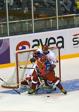 If there is one team that could need some extra praise it is Team Turkey, amassing plenty of double digit defeats against the hockey powerhouses. As it was also today the case. The courageous Turks faced-off against the mighty Russians and were massacred with a 26-0. MVP of the game was without doubt Turkish goalie Erol Kahraman who prevented from a worser fait.
