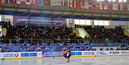 Favorites of the public, Turkish skaters Alisa AGAFONOVA / Alper UCAR ERZURUM – Today, February 1st, the figure skating competition of the Winter Universiade started. The skaters started with the performance of their short program.