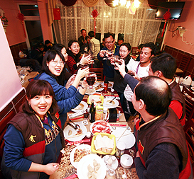 According to the Chinese calendar, February 2nd, 2011 is the last day of the “Year of Tiger” and the upcoming year is the “Year of Rabbit”. The newyear’s eve is the time when families get together. Traditionally the whole family cooks dumplings – Chinese food made from flour, meat and different vegetables, and lights fireworks. But for all the members in the Chinese delegation, this year they could not make the countdown with their families. But that does not mean the celebration is by any means regretful.