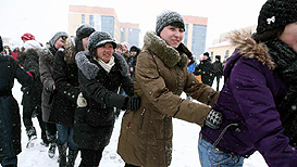 Residents of the Universiade Village engaged in such folk games as tug-of-war, sack and broom race, snowball fight. Despite the snowstorm that blew up that day, the atmosphere that was established on the festival site put students in spring mood and good spirits.