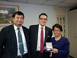 Kolë Gjeloshaj flanked by Mr. Ching-Yu Tseng and Mrs. Hsiu-Tsung Chiang