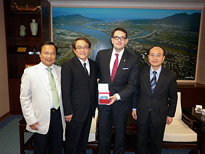 Later in the afternoon, Mr. Gjeloshaj headed to the city hall where he had another official visit with Mr. Allen W. Chiu, the Deputy Mayor of Taipei City and Mr. Tseng, the Deputy Director of Education Bureau that is in charge of supervising and financing the Organizing Committee of the upcoming FISU Forum next March, 2012. The deputy mayor gave his word to provide any assistance the OC may need to make another successful FISU Forum and at the same time he promoted how modern, convenient Taipei City is with a rich and diverse culture, and as the host city, ready to welcome all the delegates to the FISU Forum.