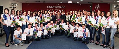 In his welcome speech to the contestants and judges Igor Sivov stated: ‘Despite the fact that the escort team will include only 30 young people, it will be our ‘gilded youth’ that will represent Russia at the 2013 Summer Universiade and 2018 FIFA World Cup. It’s quite possible that in the future they will join the ranks of the Kazan 2013 Executive Directorate’. With respect to the foreign guest, Igor Sivov added in English: ‘Kazan’s best students became ‘Faces of the Universiade’.’ The chair of the panel also extended his gratitude to the contestants for getting involved in the project and being true patriots.