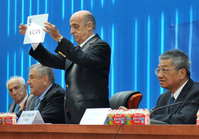 We would remind you that Russian bidding committee delegation was presented by the Deputy Minister of Sport, Tourism and Youth Affairs Pavel Kolobkov, President of the Republic of Tatarstan Rustam Minnikhanov, Mayor of Kazan Ilsur Metshin, Executive Director of the Kazan 2015/2017 bidding committee, Director General of the Kazan 2013 Executive Directorate Vladimir Leonov, Sports Broadcasting Director General Vasily Kiknadze, the All-Russian Swimming Federation President Vladimir Salnikov, fourfold Olympic champion, IOC member Alexander Popov and threefold Olympic champion Mariya Kiseleva. During the presentation for FINA Office members each of them made a presentation in English on particular competitive advantages of Kazan in a struggle for the right to hold the World Water Sports Championships. Two video films “A Thousand Worlds of New” and “Speed of Life” by famous Hollywood’s director Rupert Wainwright were also shown during the presentation. “Media Arts Group” advertising company helped to make the final part of the presentation.