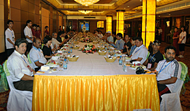After the Opening Ceremony, a welcome banquet was hosted in the name of Laizhou Municipal Government for AUSF Guests and all the delegation. Mrs. ZHAN Xiuyun, OC Vice President, delivered a welcome speech. Mr. AL-HAI Omar A. expressed the gratitude, on behalf of AUSF, to Laizhou city and presented an AUSF souvenir to Laizhou Municipal Government and Laizhou Industry Park respectively. The OC also presented a special souvenir for each head of delegation. Everybody present had a happy, comfortable and wonderful evening.